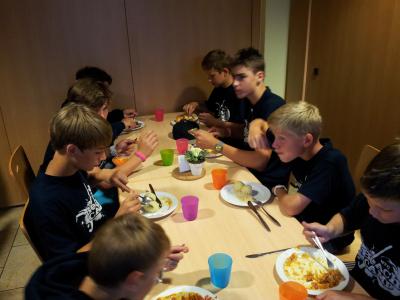 Kurz vor dem zu Bett gehen trafen wir uns noch zu großer Regelkunde im Seminarraum. Allerdings ging es hier weniger um Hockeyregeln, sondern viel mehr darum, den Kinder zu erzählen wie man sich zu Benehmen hat. Oder eben auch, wie man einen Tisch abräumt und putzt. Allerdings meinten die Kids, dass sie das natürlich alles schon können und wissen. Tz was für eine Lüge, zumindest sahen die Tische nach Knödel und Blaukraut völlig anders aus.
