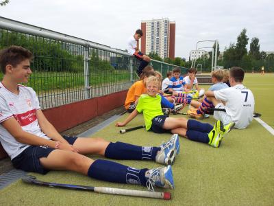 9:15 Uhr ab auf die Räder und los zum Rostocker Hockeyplatz. Platz gesprengt (nicht in die Luft sondern nur nass gemacht;-) Mannschaften eingeteilt und schon hieß es, lasst die Spiele beginnen. Ach ja und das nur mal so ganz nebenbei, die Mannschaften waren natürlich mal wieder sowas von unfair eingeteilt, welch Überraschung.